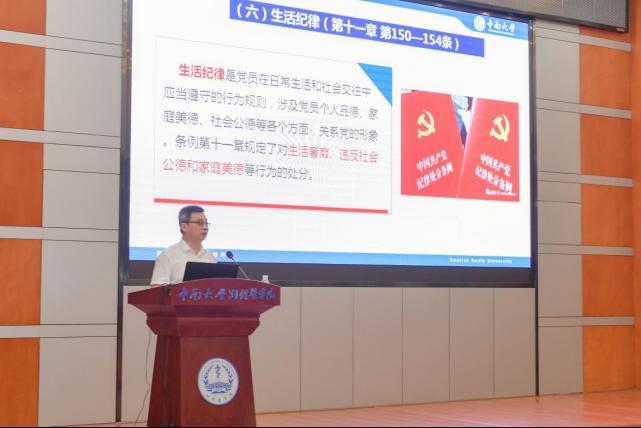 根据《中共中南大学委员会关于在全校开展党纪学习教育的实施方案》文件要求,2024年5月31日中午,基础医PG免费试玩 党委开展师生党员集中学习。本次集中学习由院党委书记王慷慨教授就《中国共产党纪律处分条例》解读作专题报告。全院500余名师生党员在福庆楼四楼学术报告厅主会场和4个分会场及线上参加学习。