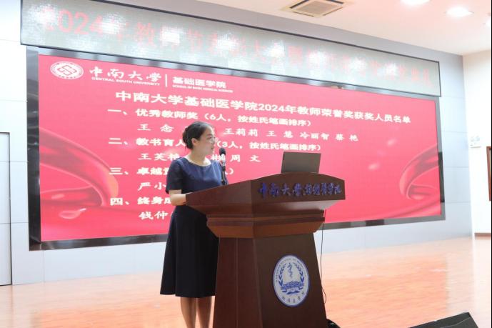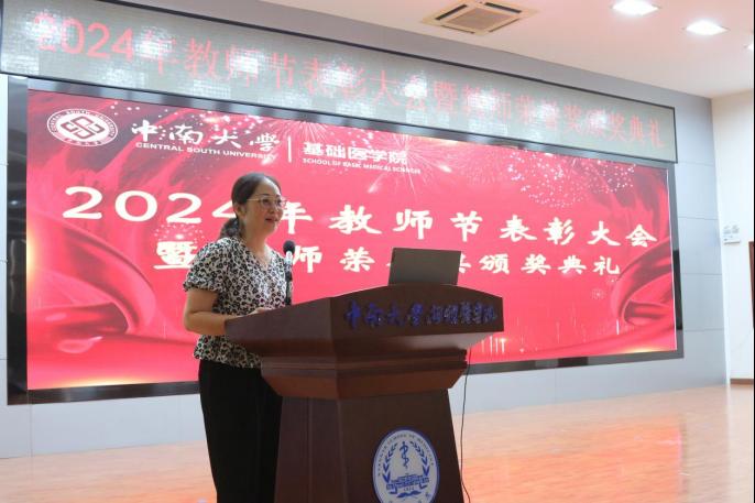 为全面贯彻习近平总书记关于教育工作的重要论述,有效落实《中共中央、国务院关于弘扬教育家精神加强新时代高素质专业化教师队伍建设的意见》,进一步加强PG电子试玩 教师队伍建设,厚植尊师重教文化,9月10日上午,PG电子试玩 在湘雅新校区图书馆学术报告厅举行2024年教师节表彰大会暨教师荣誉奖颁奖典礼,会议由院党委冯虹副书记主持,PG免费试玩 领导、教职员工和学生代表参加会议。