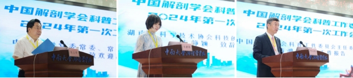 陈立章副校长对全国各地的解剖学专家和学者莅临中南大学表示热烈欢迎,重点强调中南大学科普和科学素质建设稳中求进的发展态势,目前已有中南大学人体形态学科技馆等4个国家科普教育基地,逐渐形成科普工作“中南”特色。2024年是湘雅医学办学110周年,陈校长希望以此次大会为契机,在推动我国解剖学科普工作更进一步的同时,也让大家深入了解中南大学,并一如既往地与中南大学进行密切合作,共促发展。