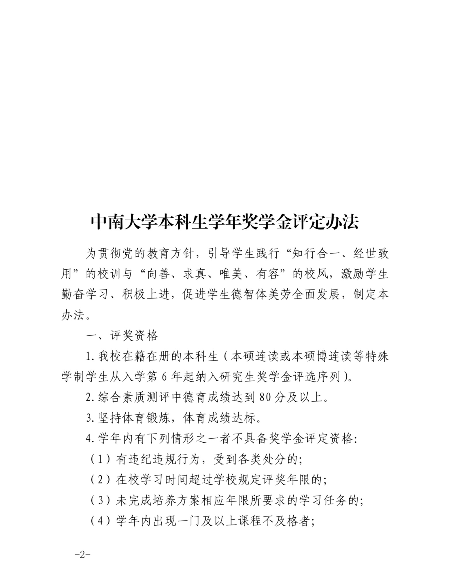 中南大学本科生学年奖学金评定办法