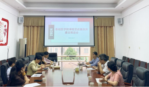 2024年6月7日上午9:00,基础医PG免费试玩 课程思政案例库建设推进会在孝骞楼344会议室召开。会议由院课程思政教学研究中心陈旦副教授主持,王慷慨书记参会并致辞,各课程单位教学主任及教学骨干参会。