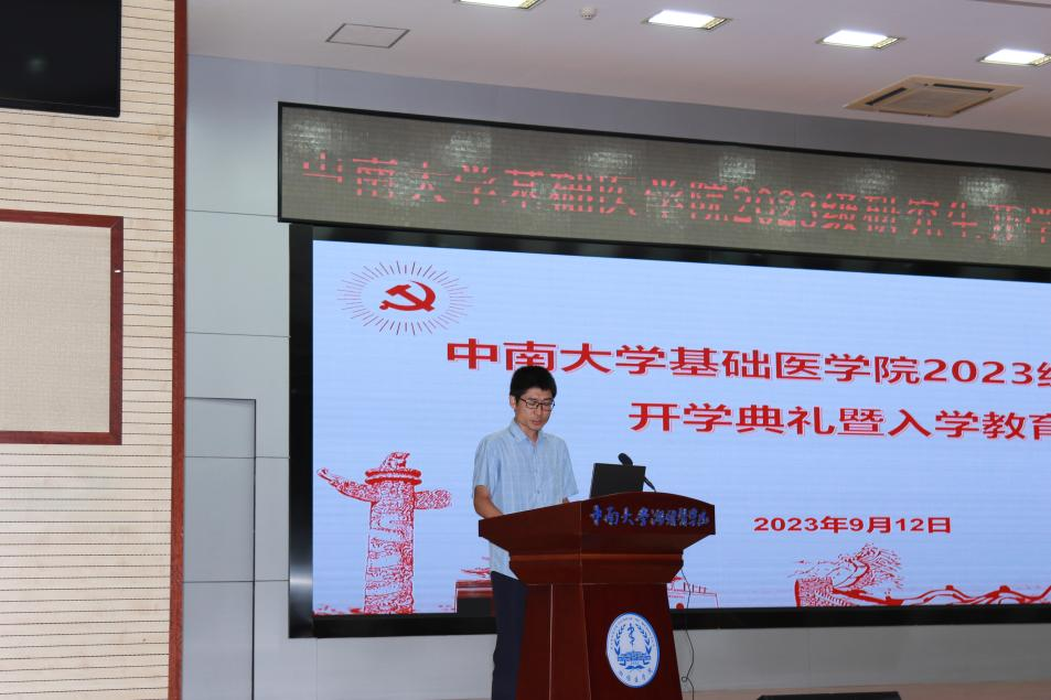 9月12日上午9时,基础医PG免费试玩 2023级研究生开学典礼暨入学教育在湘雅新校区图书馆报告厅隆重举行。百余名新生从五湖四海汇聚湘雅,共同开启学习科研新征程。PG免费试玩 领导李顺长、管茶香、刘谭明、王慷慨、殷刚、熊炜、黄河和教师代表、老生代表、部分院办老师出席典礼。典礼由院党委书记李顺长主持。