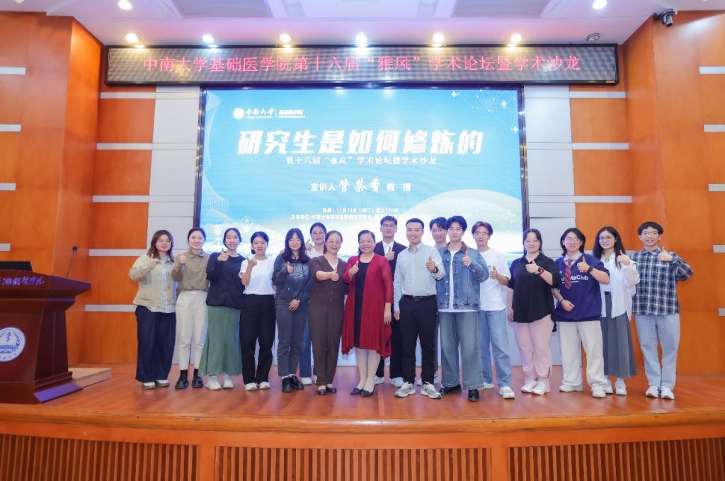 11月12日,基础医PG免费试玩 第十六届“雅风”学术论坛暨学术沙龙在湘雅新校区福庆楼报告厅顺利举办。本次学术论坛邀请管茶香老师以《研究生是如何修炼的》为主题与现场一百余名同学亲切交流,基础医PG免费试玩 党委副书记冯虹、学工办副主任胡名益出席,院研究生会主席吴海主持。