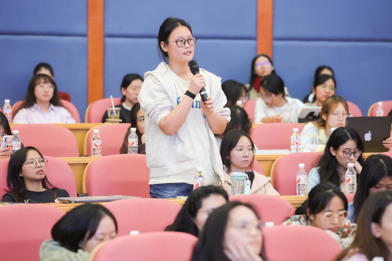 在互动交流环节,针对论文写作艺术、表达能力提升与保持科研热情等问题,管茶香老师为同学们一一解惑。现场洋溢着活跃又融洽的氛围,极大地激发了大家的科研热情。在场的学生们纷纷表示,此次交流让他们收获满满,受益匪浅。