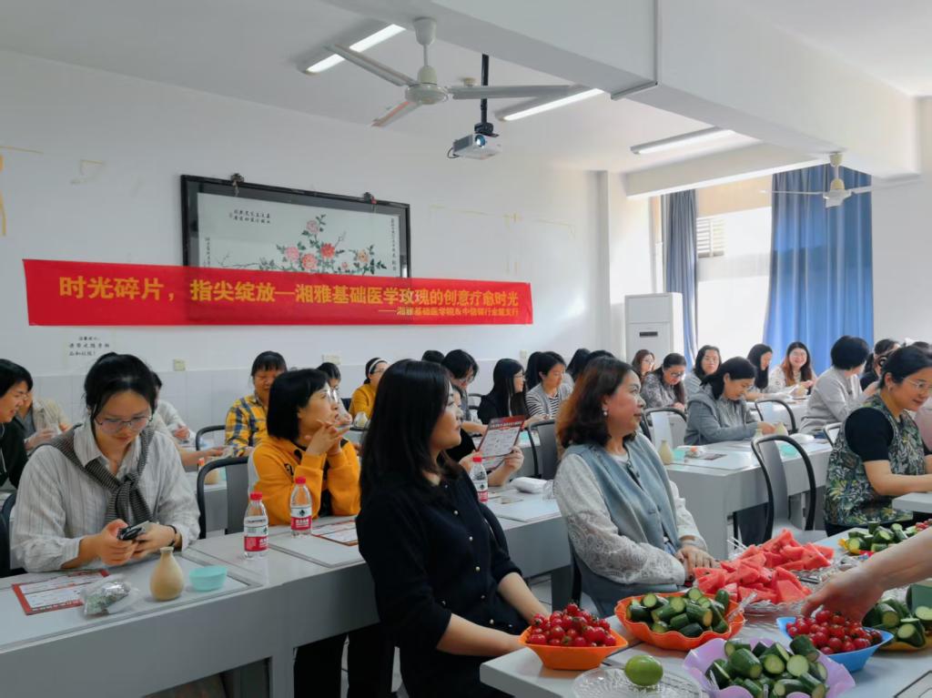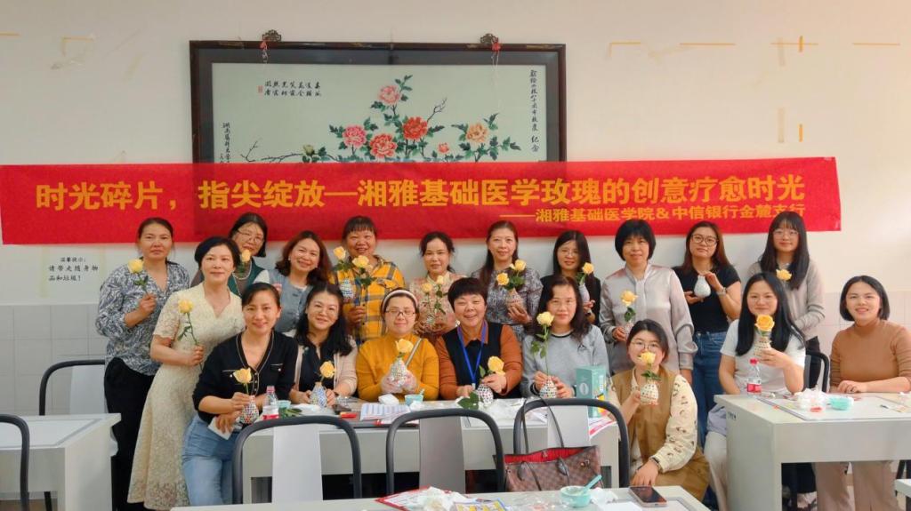 3月27日下午,PG免费试玩 工会精心筹备,组织女职工们开展了“时光碎片,指尖绽放——湘雅基础医学玫瑰的创意疗愈时光”活动。活动中,大家沉浸式地享受着创意手工带来的乐趣,让思维与灵感在指尖尽情碰撞,悠然品味下午茶,品尝清甜的水果,为身心补充满满能量。