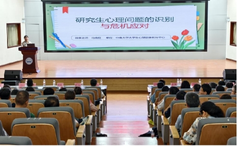 会议最后,中南大学心理健康教育中心马晓虹老师带来《研究生心理问题的识别与危机应对》主题宣讲。她详细介绍了研究生常见心理问题的表现及识别方法,分享危机干预策略,呼吁教职工关注学生心理健康,助力学生健康成长。