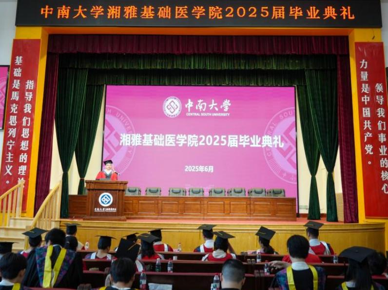 6月20日,中南大学湘雅基础PG免费试玩 2025年毕业典礼在开福校区福庆礼堂举行。2025届全体毕业生、导师代表及家长共200余人到场参加,PG免费试玩 常务副院长武明花、PG免费试玩 院长熊炜及全体在院领导出席,院党委书记王慷慨主持典礼。