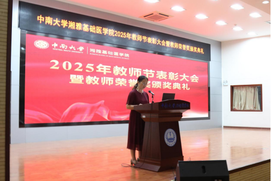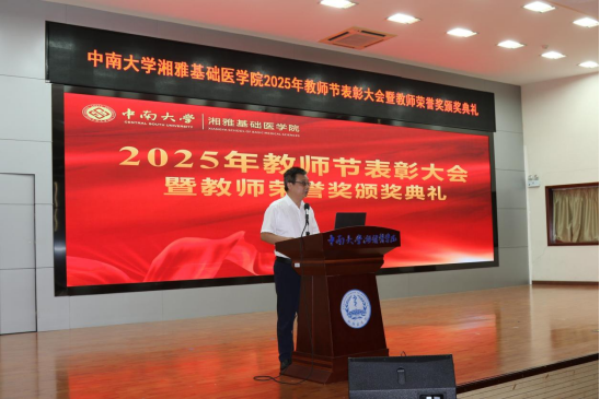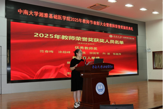 为全面贯彻习近平总书记关于教育工作的重要论述,有效落实《中共中央、国务院关于弘扬教育家精神加强新时代高素质专业化教师队伍建设的意见》,厚植尊师重教文化。9月10日,PG电子试玩 在中南大学杏林校区图书馆学术报告厅举行2025年教师节表彰大会暨教师荣誉奖颁奖典礼,会议由院党委冯虹副书记主持,PG免费试玩 领导、教职员工和学生代表参加会议。