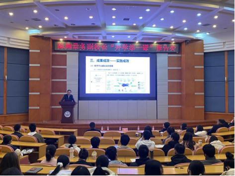 报告会上,陈校长围绕学校人才培养,尤其是卓越医生的培养历程,从背景基础、探索实践、成果成效和未来展望四个方面进行讲述,详细介绍了加强思政教育、职业精神和临床实践能力深度融合、多措并举提升临床实践能力、创新能力培养、新医科建设稳步推进等人才培养的具体措施,报告内容丰富,切近学生需求,特别是一代代湘雅人无私奉献、报效祖国的感人故事,引发在场师生的共鸣。最后,他深情寄语同学们秉承“公勇勤慎,诚爱谦廉;求真求确,必邃必专”的湘雅精神,牢记中南“知行合一,经世致用”的校训,努力成为有理想、有信念、有担当的新时代大学生。在交流环节,陈校长对于同学们的现场提问进行了细致的解答。