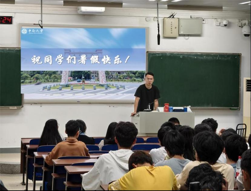 安全无小事,谨慎记心间。刘莹莹老师详细解读了中南大学暑期留校管理制度并给学生进行了安全教育,她提醒同学们防范电信诈骗,防交通事故、意外伤害,重视心理健康,通过真实案例引导同学们提高防范意识,筑牢安全防线。