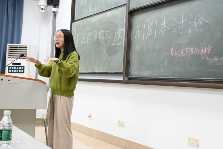 本次活动面向基础医PG免费试玩 全体学生开展,情景剧编剧魏雨缪同学首先上台向各位同学介绍本次心理情景剧的主要剧情框架,详细阐述了三位主人公的性格特点及其人物主线。