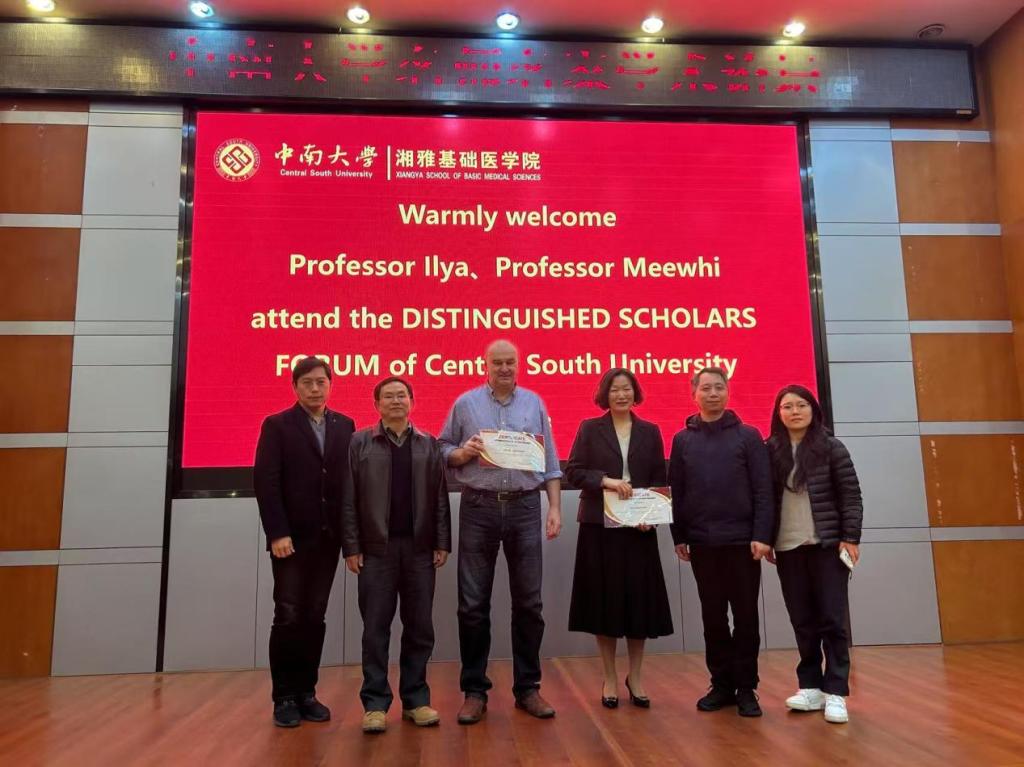 Ilya Bezprozvanny和Meewhi Kim教授访问湘雅期间,与中南大学国际交流与合作处处长殷刚教授、PG免费试玩 党委书记王慷慨教授、湘雅三医院院长江泓教授等进行了深入交流,并探讨了进一步深入开展合作研究的模式。